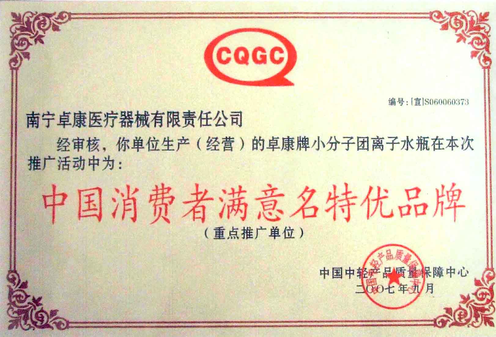 卓康牌離子水瓶榮獲中國企業(yè)名優(yōu)產品[點小圖見大圖]、中國著名品牌稱號[點小圖可見大圖]