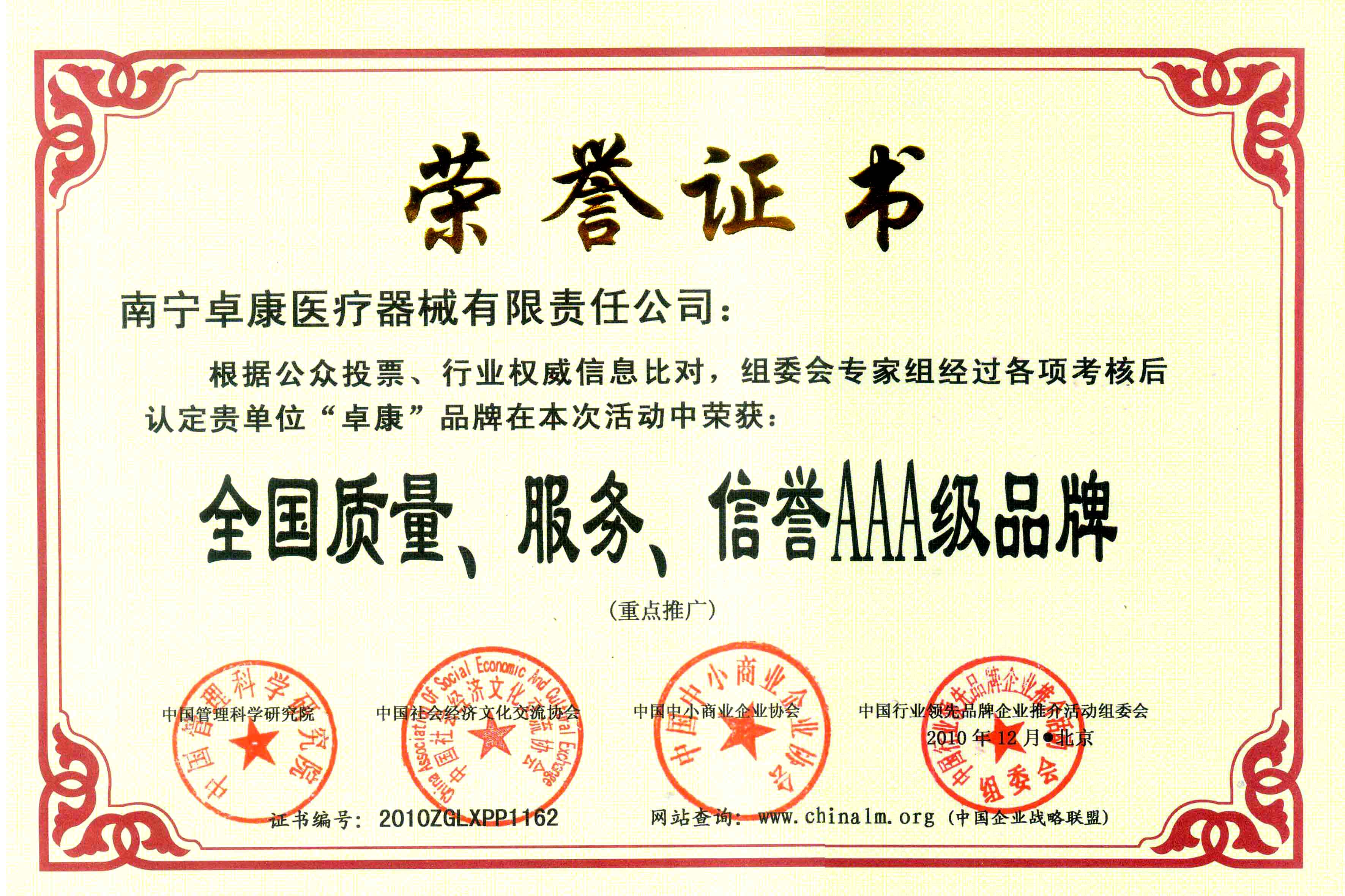 陸江榮獲引領行業(yè)發(fā)展杰出貢獻人物證書 --------卓康公司榮獲全國質量、服務、信譽AAA級品牌證書